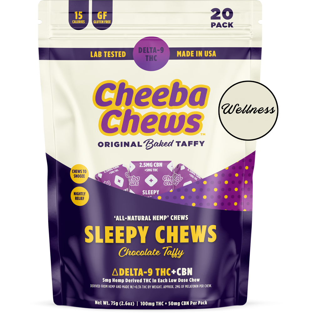 20 chews to help you snooze. Enjoy a 1:1 THC : CBN ratio in our original chocolate taffy chews, enhanced by approximately 2mg of melatonin. Each package comes with twenty individual pieces, dosed with 5mg of THC and 2.5mg of CBN. A perfect night time snack just before bed. Sweet dreams are made of these!